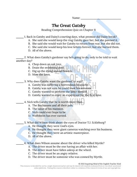 Download Great Gatsby Quiz Answer Key PDF