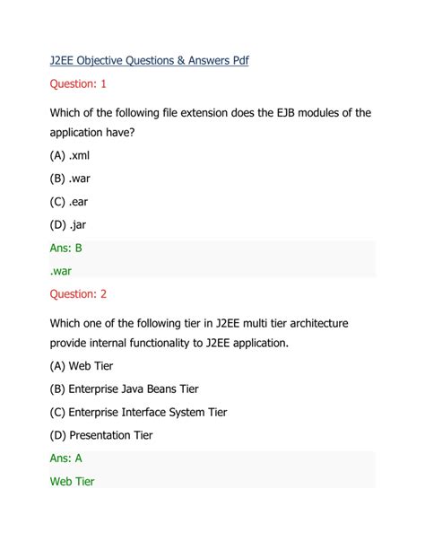 Read Online Java J2ee Objective Type Questions Answers Epub